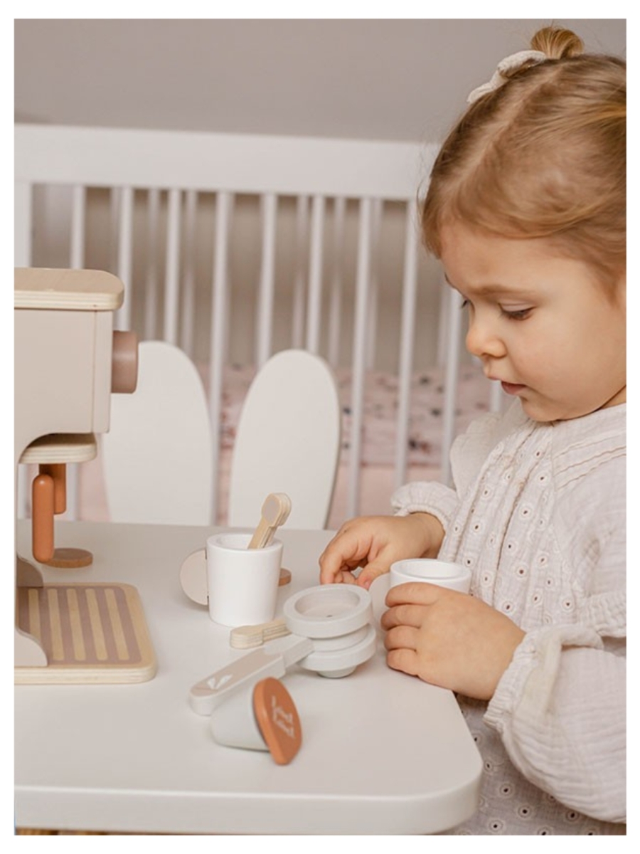 De real-look en bedieningswijze van deze koffiemachine zal kinderen ongetwijfeld aanzetten tot gezellige rollenspelletjes. Dit stimuleert niet alleen hun creativiteit en verbeeldingskracht, ze leren ook hoe te interageren en oefenen hun oog-hand coördinatie.